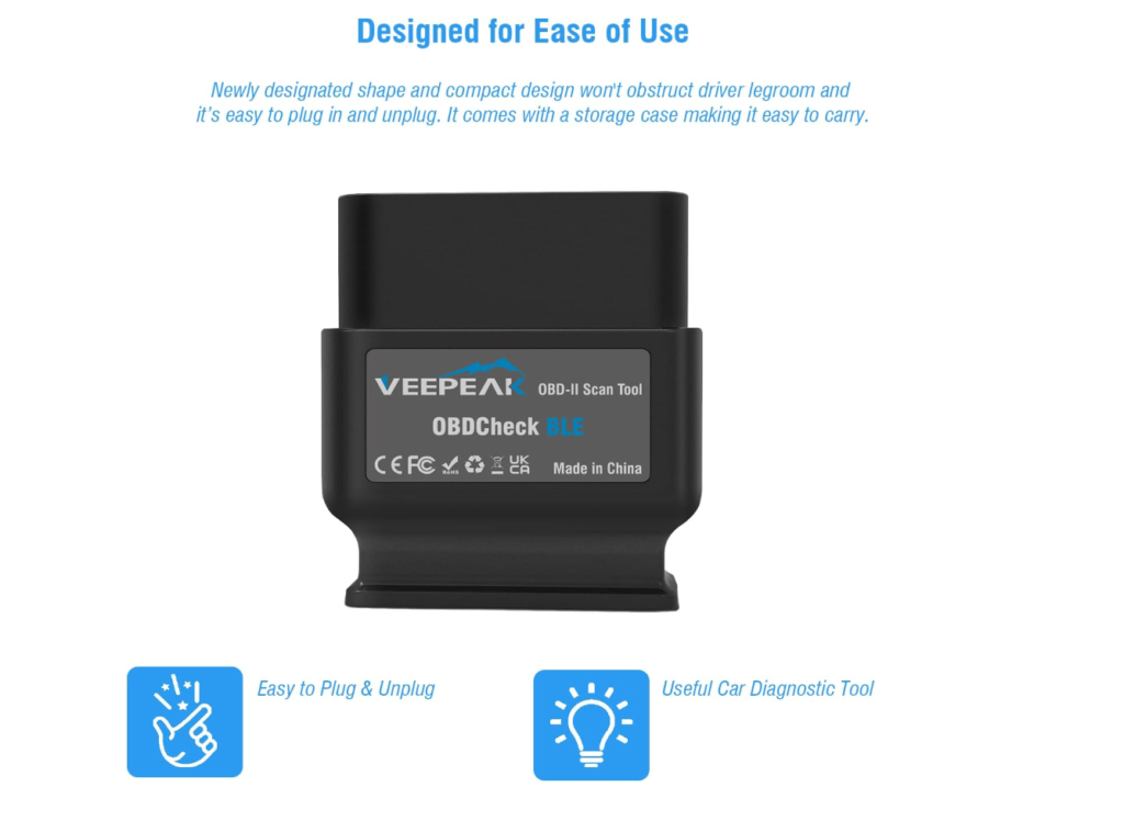 • Easy to Use: No need for batteries or chargers; it gets power directly from the OBD-II Data Link Connector in your vehicle.
