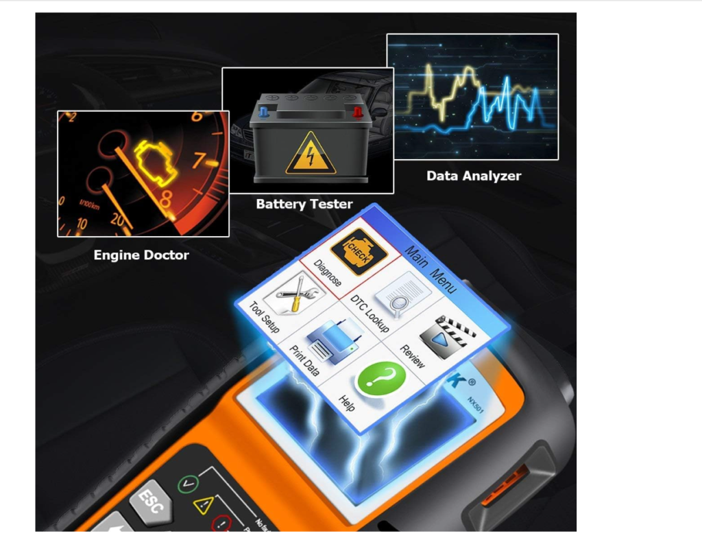 The NEXPEAK NX501 offers advanced features typically found in higher-end models, such as live data graphing and built-in DTC lookup library.